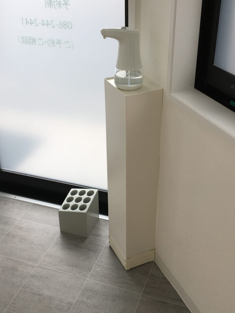 当院の感染予防対策について 2021.01.14 2020.12.29 新型コロナウィルスに対して[当院の感染予防対策]1.完全予約制2.予約と予約との間隔を広げ、毎回ドアノブ、脱衣かご、スリッパなどの アルコール消毒をしております。3.手指用毒用アルコールを非接触型のアルコールディスペンサーに変えました。